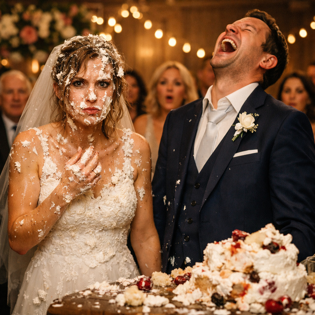 Я услышала общий вдох зала. Кто-то ахнул. Кто-то нервно хихикнул. Скрипнули стулья. А я просто стояла, не понимая, что произошло. Сладкий густой крем был в глазах, на ресницах, в волосах, на шее. Фата прилипла, макияж потёк, лиф платья оказался в маслянистых пятнах, и я вдруг почувствовала не просто испуг, а настоящую, оглушающую волну стыда. Я не видела лиц гостей, но всем телом ощущала их взгляды. И самое страшное было не в испорченной причёске и не в платье. Самое страшное было в том, что человек, который только что клялся меня беречь, решил сделать меня посмешищем ради чужого смеха.