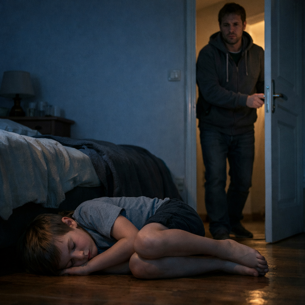 Я заглянул в комнату и увидел пустую кровать. А потом перевёл взгляд вниз — и нашёл сына на полу, в углу у окна. Он лежал, свернувшись в крошечный клубок, с тонким синим пледом на плечах. Не укрытый, не устроенный, не по-детски расслабленный — а как будто настороженный даже во сне. Но тогда я списал всё на детские странности. Поднял его, отнёс в постель, укрыл и решил, что завтра он забудет об этой своей выдумке.